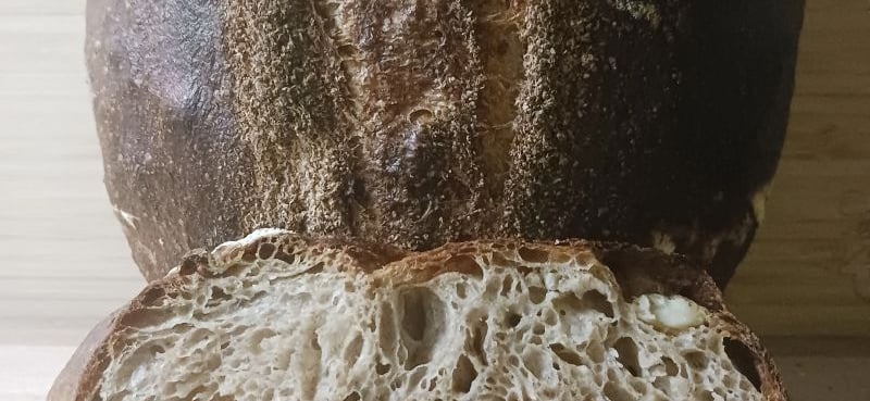 Roasted Potato and Onion. This 50% whole wheat loaf is naturally fermented by a rye sourdough. Small chunks of potato add wonderfully surprising texture. But the real magic is in the crust infused with the juice of camelized onion. I think this dough would make a fantastic broetchen...next time!