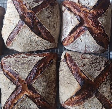Sunflower Squares. This 35% rye / 65% wheat loaf is naturally fermented by "sourpuss", my rye sourdough and chock full of toasted sunflower seeds. What I am most excited to share with you are two flavor enhancing inclusions that elevate these loaves to another level.